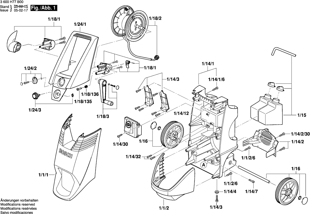 Qui troverai tutte le parti e i disegni disponibili di “Bosch 3600H77B00 ( AQUATAK150PROX )”. Da qui puoi ordinare direttamente tutte le parti desiderate. Molte parti devono essere ordinate dal produttore, a seconda della marca, ciò richiede da una a quattro settimane. Tutte le informazioni che abbiamo sono sul nostro sito web, non possiamo consigliarti su ciò di cui hai bisogno, per questo dovrai restituire la macchina per la riparazione. Nota quanto segue al momento dell’ordinazione: