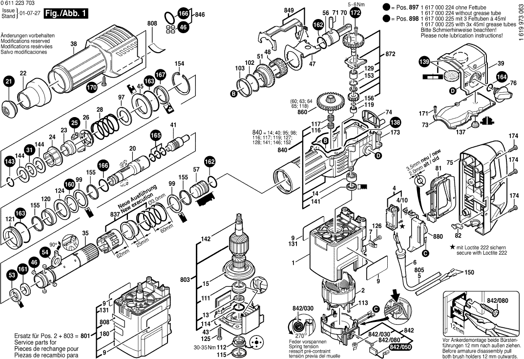 Qui troverai tutte le parti e i disegni disponibili di “Bosch 0611223703 ( GBH10DC )”. Da qui puoi ordinare direttamente tutte le parti desiderate. Molte parti devono essere ordinate dal produttore, a seconda della marca, ciò richiede da una a quattro settimane. Tutte le informazioni che abbiamo sono sul nostro sito web, non possiamo consigliarti su ciò di cui hai bisogno, per questo dovrai restituire la macchina per la riparazione. Nota quanto segue al momento dell’ordinazione: