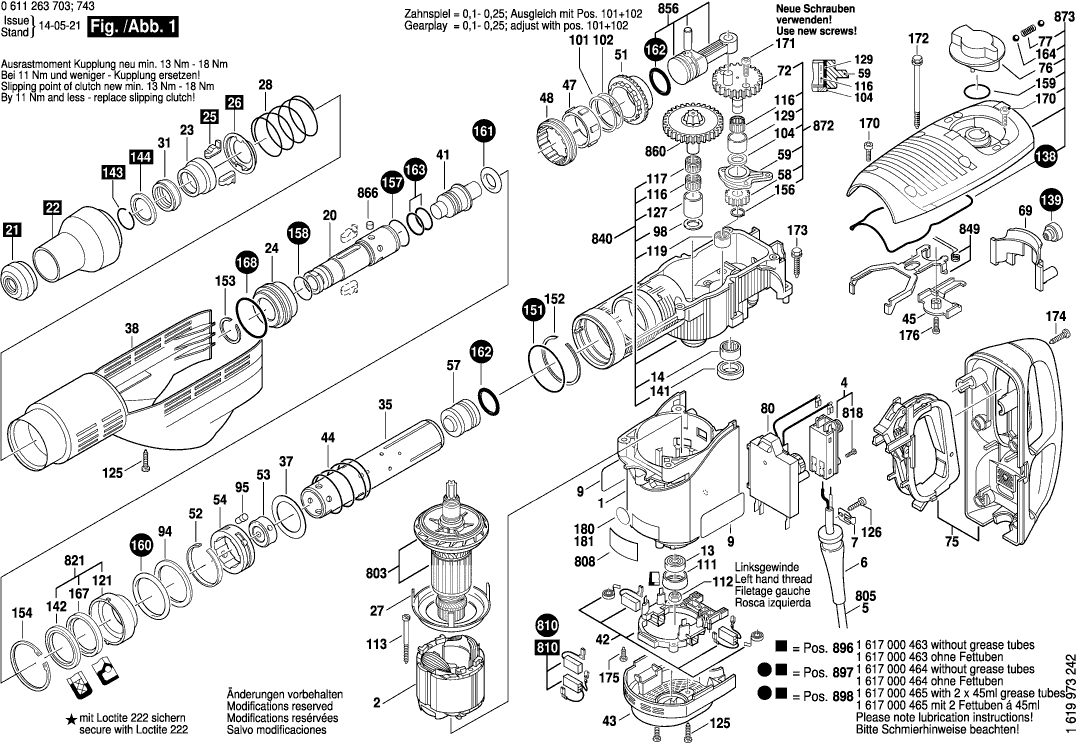 Qui troverai tutte le parti e i disegni disponibili di “Bosch 0611263703 ( GBH7-46DE )”. Da qui puoi ordinare direttamente tutte le parti desiderate. Molte parti devono essere ordinate dal produttore, a seconda della marca, ciò richiede da una a quattro settimane. Tutte le informazioni che abbiamo sono sul nostro sito web, non possiamo consigliarti su ciò di cui hai bisogno, per questo dovrai restituire la macchina per la riparazione. Nota quanto segue al momento dell’ordinazione: