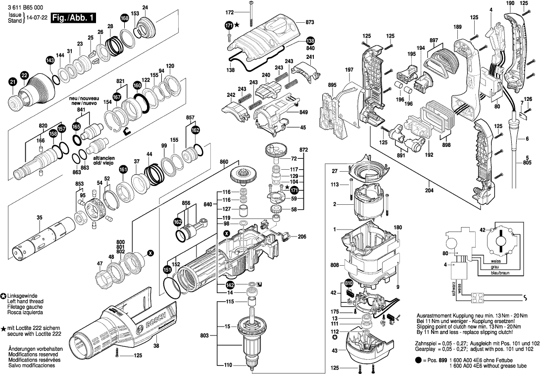 Qui troverai tutte le parti e i disegni disponibili di “Bosch 3611B65000 ( GBH8-45DV )”. Da qui puoi ordinare direttamente tutte le parti desiderate. Molte parti devono essere ordinate dal produttore, a seconda della marca, ciò richiede da una a quattro settimane. Tutte le informazioni che abbiamo sono sul nostro sito web, non possiamo consigliarti su ciò di cui hai bisogno, per questo dovrai restituire la macchina per la riparazione. Nota quanto segue al momento dell’ordinazione: