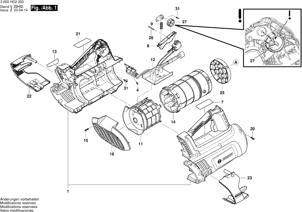 Qui troverai tutte le parti e i disegni disponibili di “Bosch 3600HD2000 ( GBL18V-750 )”. Da qui puoi ordinare direttamente tutte le parti desiderate. Molte parti devono essere ordinate dal produttore, a seconda della marca, ciò richiede da una a quattro settimane. Tutte le informazioni che abbiamo sono sul nostro sito web, non possiamo consigliarti su ciò di cui hai bisogno, per questo dovrai restituire la macchina per la riparazione. Nota quanto segue al momento dell’ordinazione: