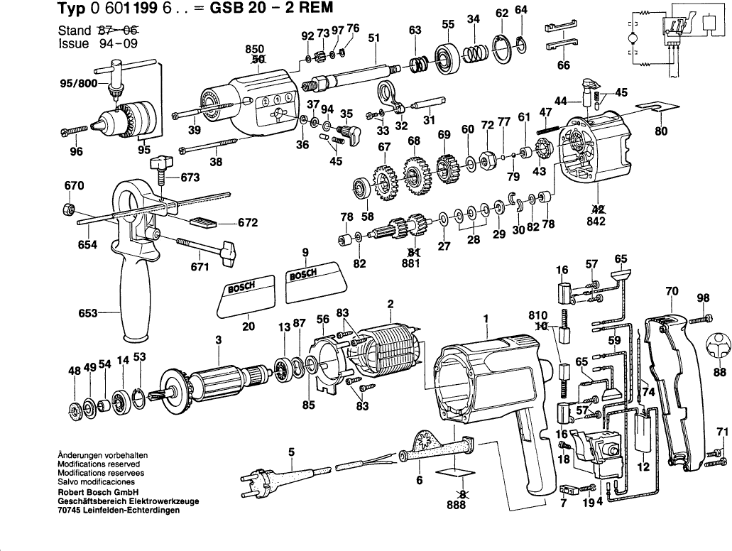 Qui troverai tutte le parti e i disegni disponibili di “Bosch 0601199603 ( GSB20-2REM )”. Da qui puoi ordinare direttamente tutte le parti desiderate. Molte parti devono essere ordinate dal produttore, a seconda della marca, ciò richiede da una a quattro settimane. Tutte le informazioni che abbiamo sono sul nostro sito web, non possiamo consigliarti su ciò di cui hai bisogno, per questo dovrai restituire la macchina per la riparazione. Nota quanto segue al momento dell’ordinazione: