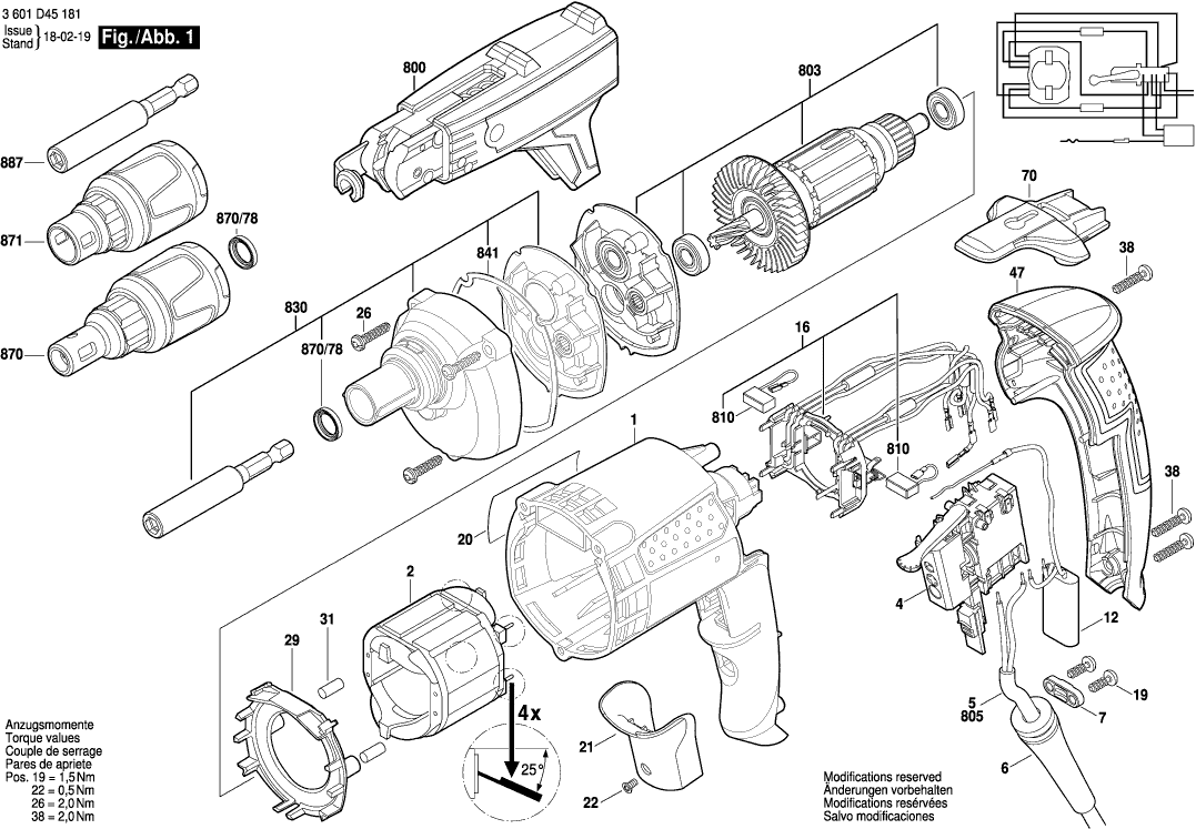 Disegni tecnici di Bosch 3601D451H1 ( GSR6-45TE )