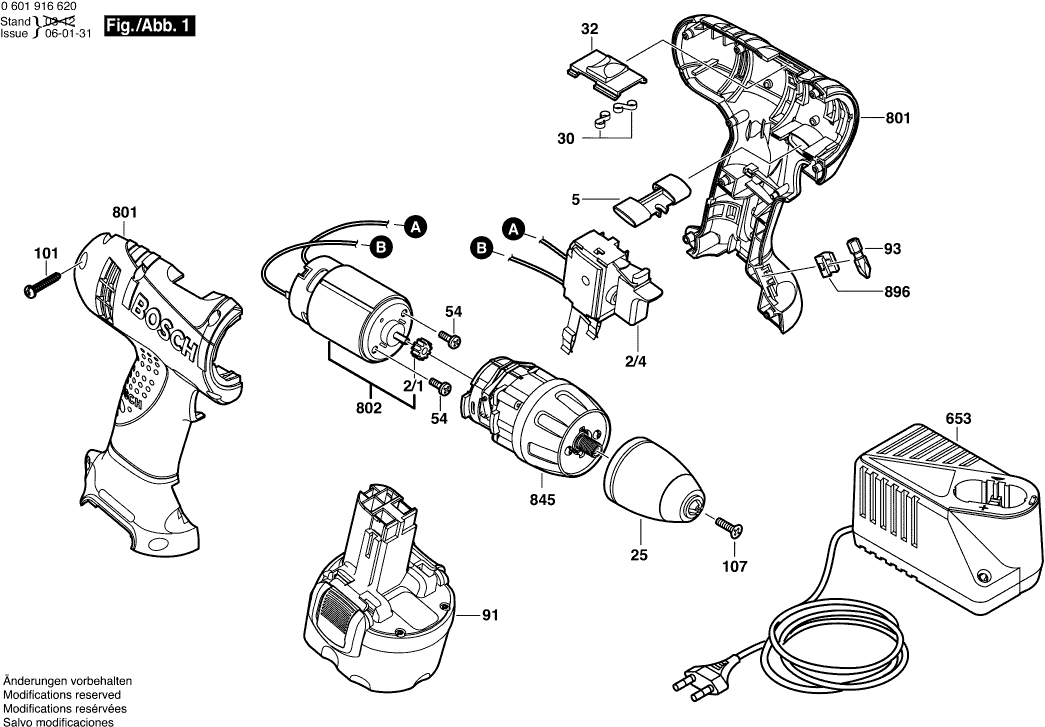 Elenco parti di Bosch 0601916630 ( GSR9,6V )