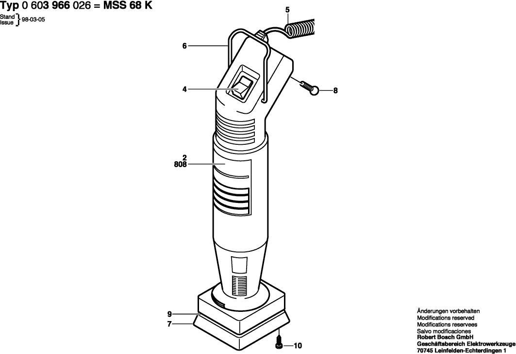 Qui troverai tutte le parti e i disegni disponibili di “Bosch 0603963026 ( MSS68 )”. Da qui puoi ordinare direttamente tutte le parti desiderate. Molte parti devono essere ordinate dal produttore, a seconda della marca, ciò richiede da una a quattro settimane. Tutte le informazioni che abbiamo sono sul nostro sito web, non possiamo consigliarti su ciò di cui hai bisogno, per questo dovrai restituire la macchina per la riparazione. Nota quanto segue al momento dell’ordinazione: