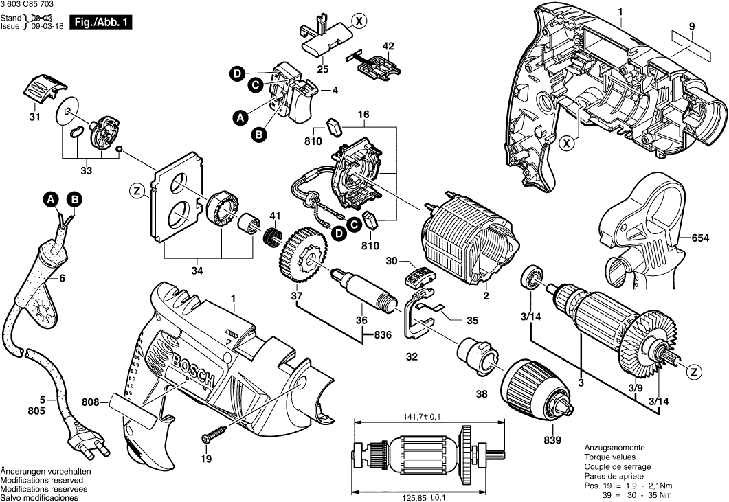 Disegni tecnici di Bosch 3603C85703 ( PSB650RA )