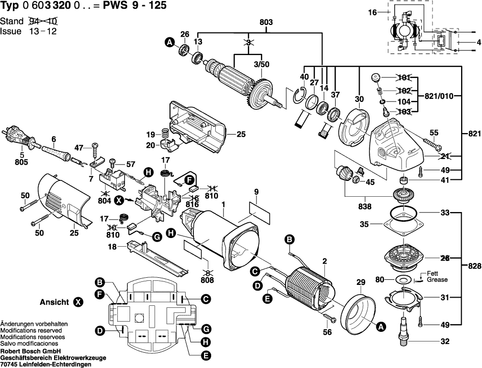 Qui troverai tutte le parti e i disegni disponibili di “Bosch 0603320003 ( PWS9-125 )”. Da qui puoi ordinare direttamente tutte le parti desiderate. Molte parti devono essere ordinate dal produttore, a seconda della marca, ciò richiede da una a quattro settimane. Tutte le informazioni che abbiamo sono sul nostro sito web, non possiamo consigliarti su ciò di cui hai bisogno, per questo dovrai restituire la macchina per la riparazione. Nota quanto segue al momento dell’ordinazione: