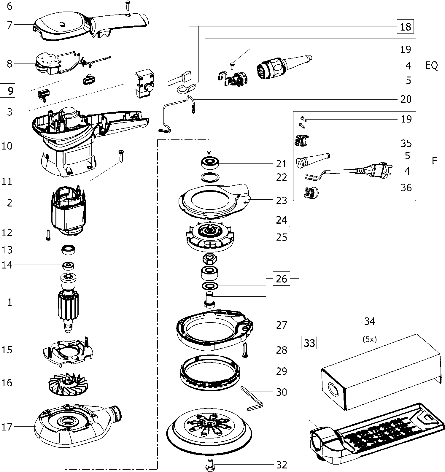Qui troverai tutte le parti e i disegni disponibili di “Festool 492035 ( ETS150-5EQ-C )”. Da qui puoi ordinare direttamente tutte le parti desiderate. Molte parti devono essere ordinate dal produttore, a seconda della marca, ciò richiede da una a quattro settimane. Tutte le informazioni che abbiamo sono sul nostro sito web, non possiamo consigliarti su ciò di cui hai bisogno, per questo dovrai restituire la macchina per la riparazione. Nota quanto segue al momento dell’ordinazione: