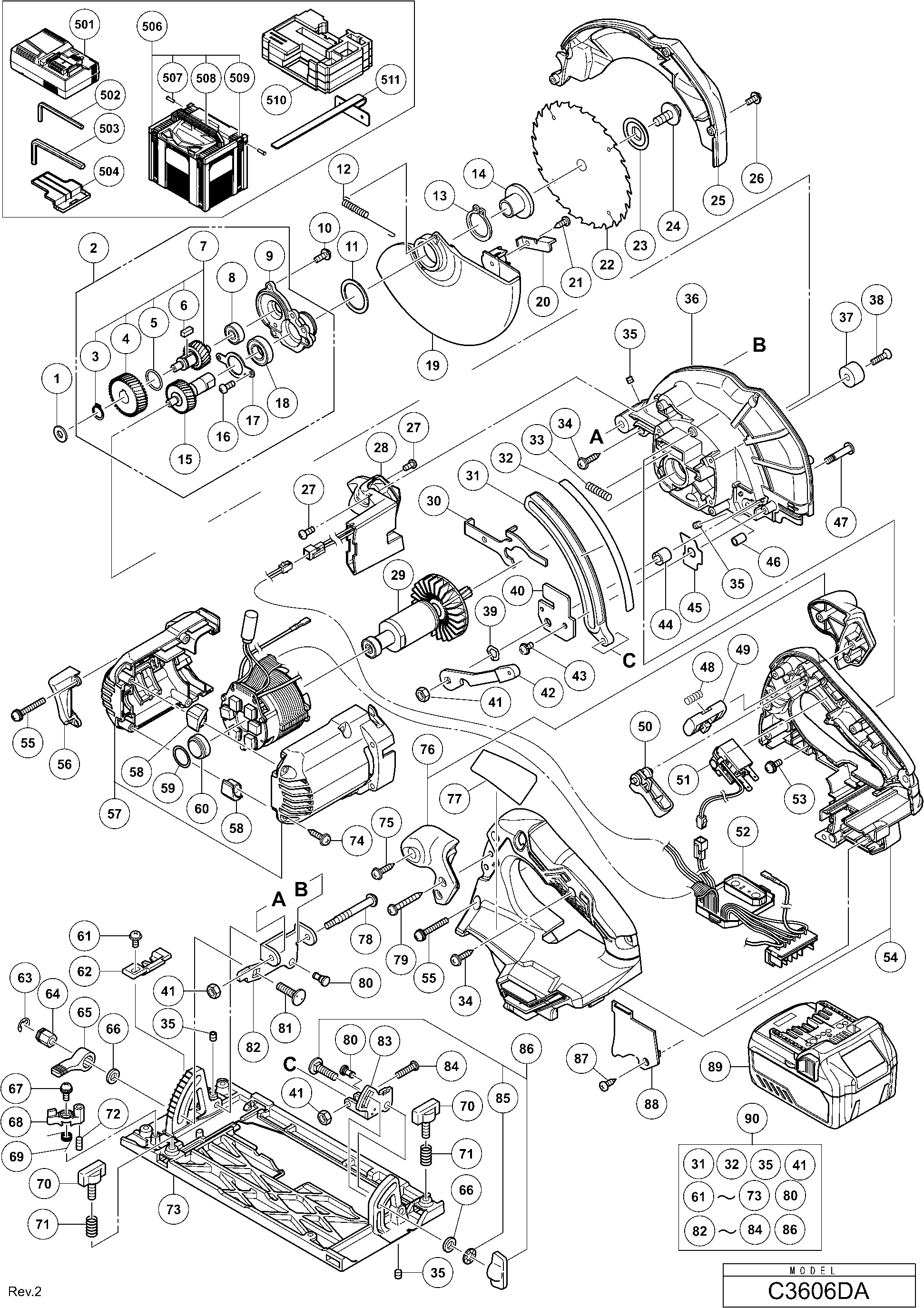 Elenco parti di Hikoki C3606DA
