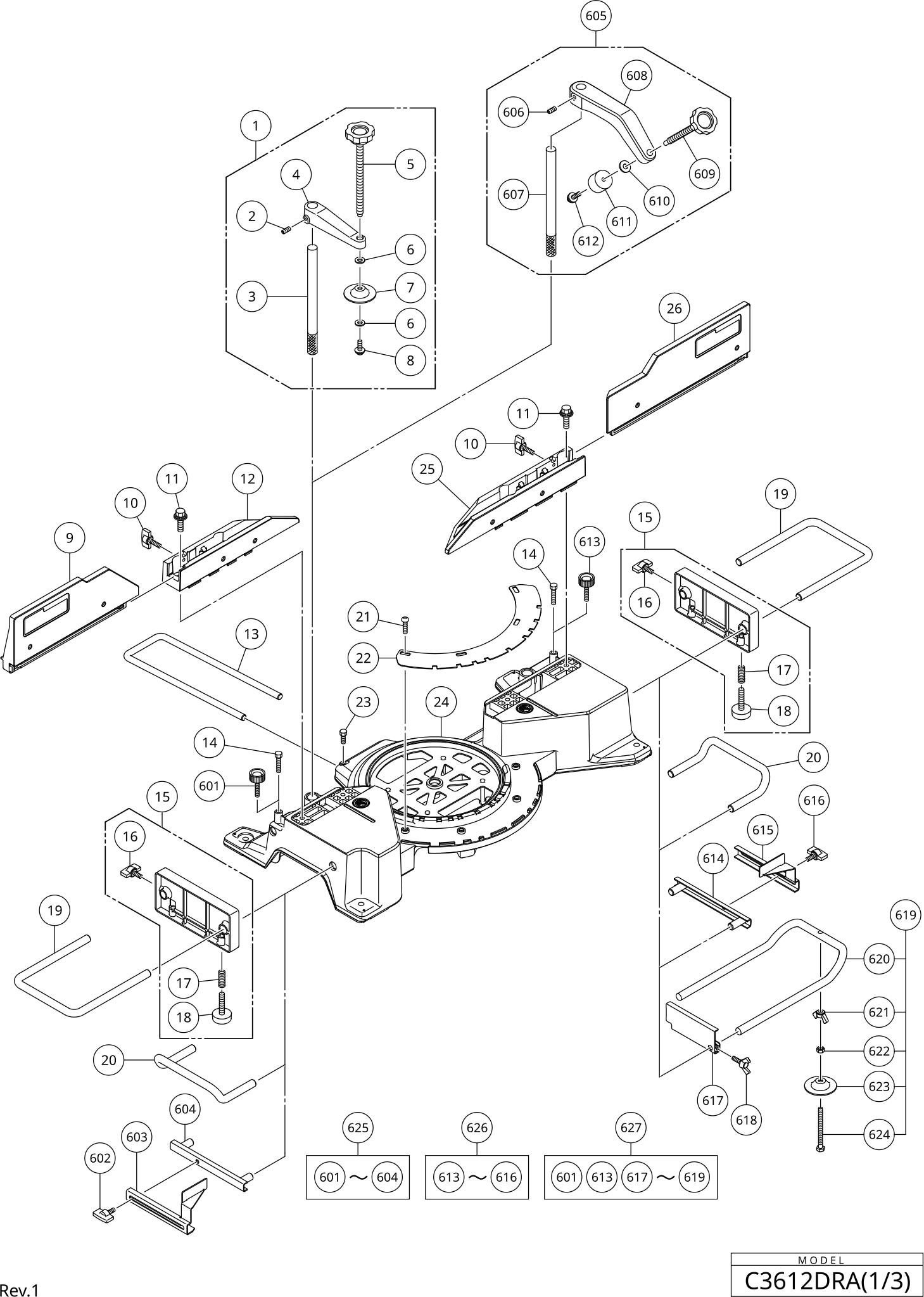 | Assemblaggio Portaoggetti Incluso 620-625 | ||||