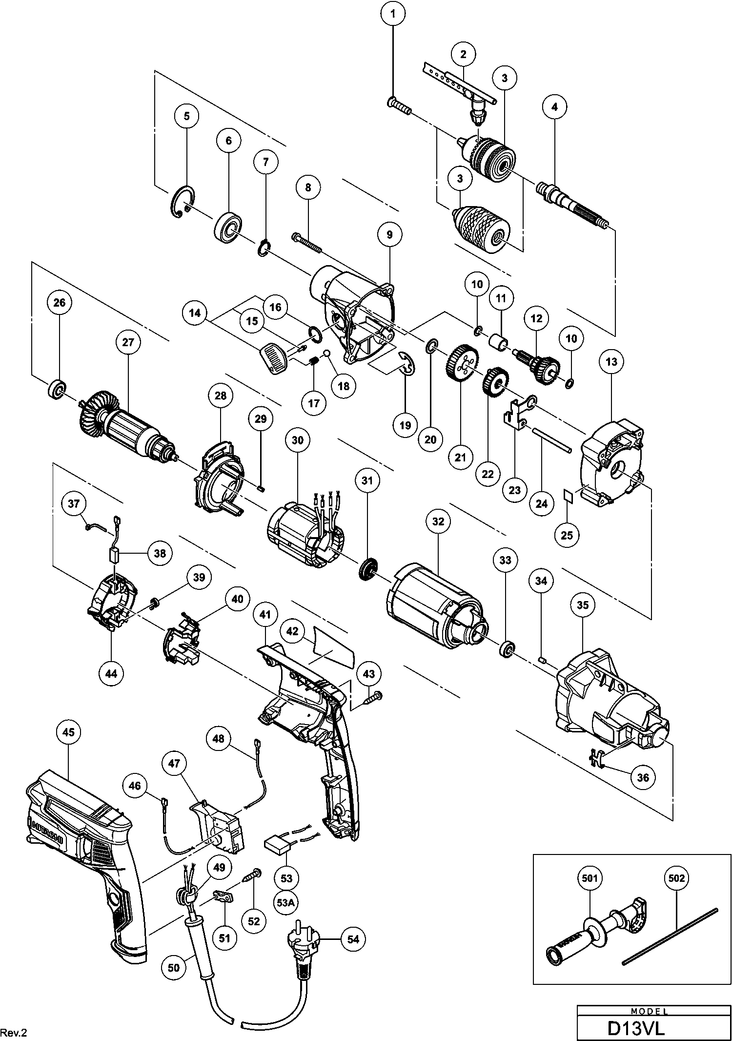 Elenco parti di Hikoki D13VL
