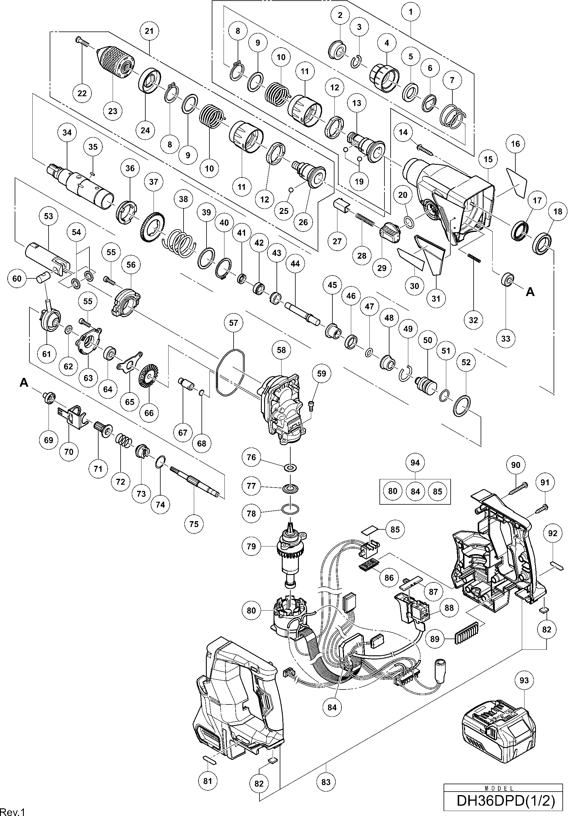 Elenco parti di Hikoki DH36DPD