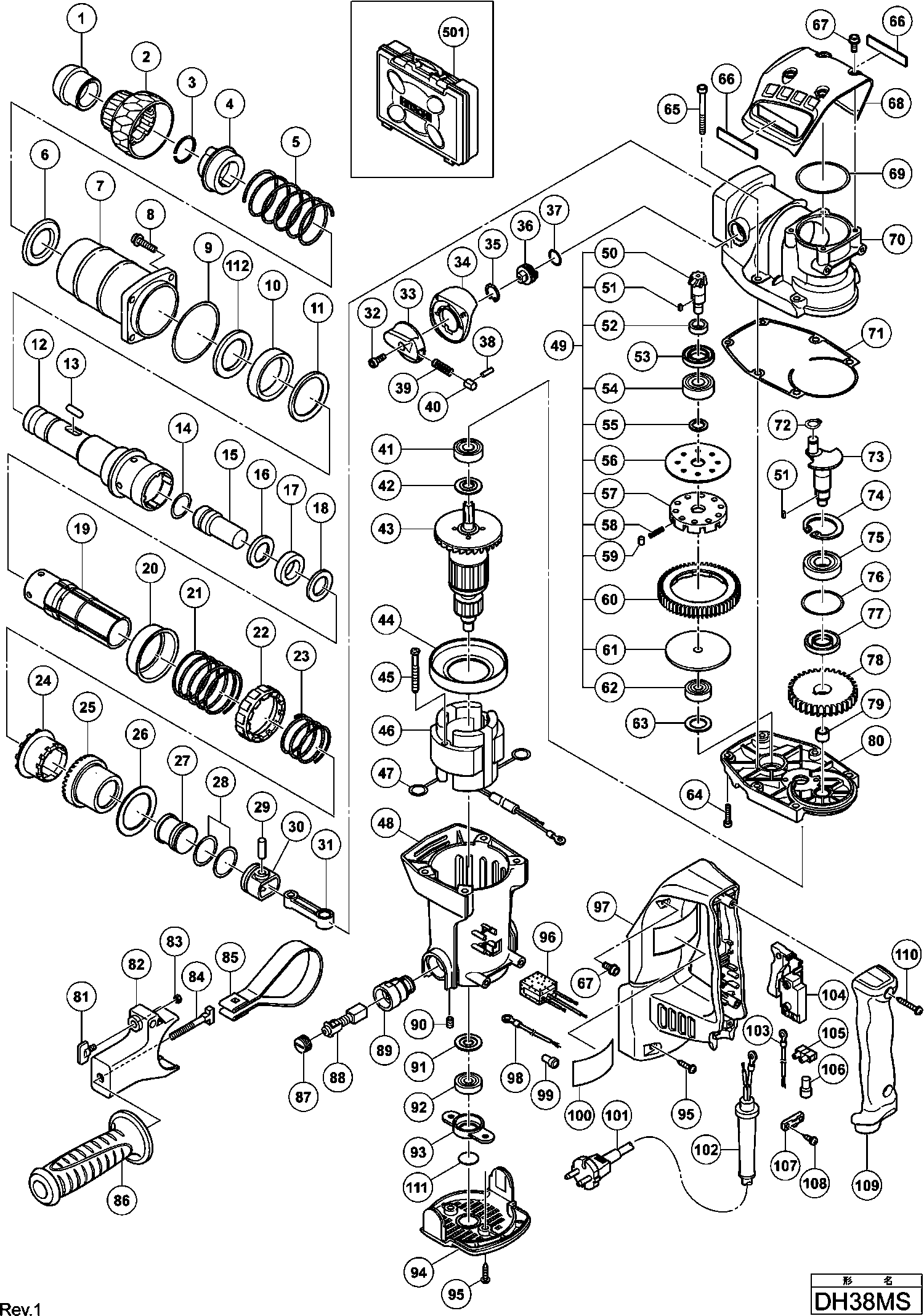 Elenco parti di Hikoki DH38MS