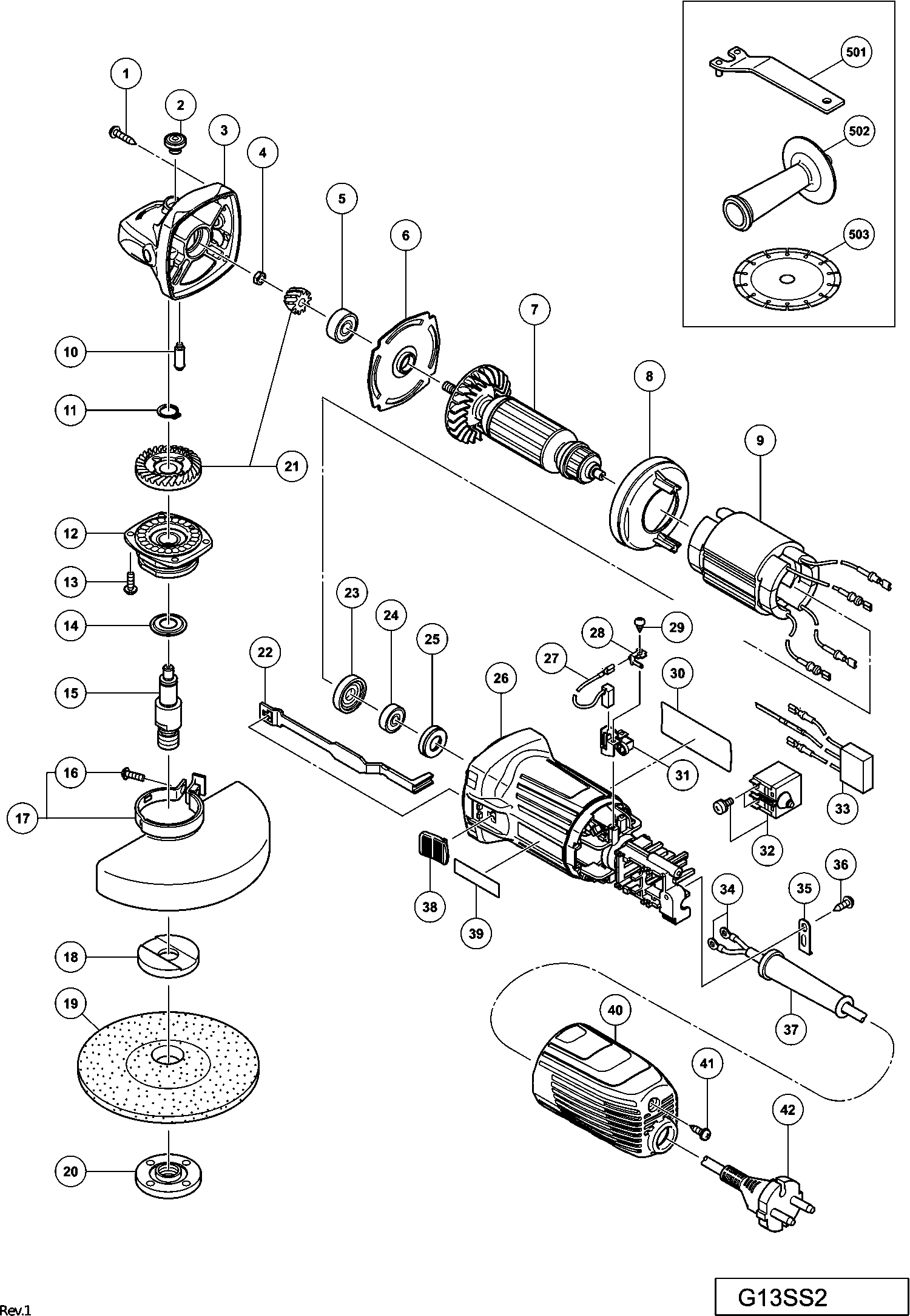 Qui troverai tutte le parti e i disegni disponibili di “Hikoki G13SS2”. Da qui puoi ordinare direttamente tutte le parti desiderate. Molte parti devono essere ordinate dal produttore, a seconda della marca, ciò richiede da una a quattro settimane. Tutte le informazioni che abbiamo sono sul nostro sito web, non possiamo consigliarti su ciò di cui hai bisogno, per questo dovrai restituire la macchina per la riparazione. Nota quanto segue al momento dell’ordinazione:
