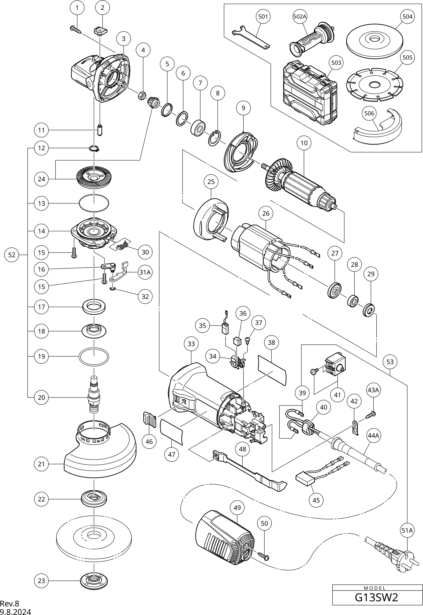 Elenco parti di Hikoki G13SW2