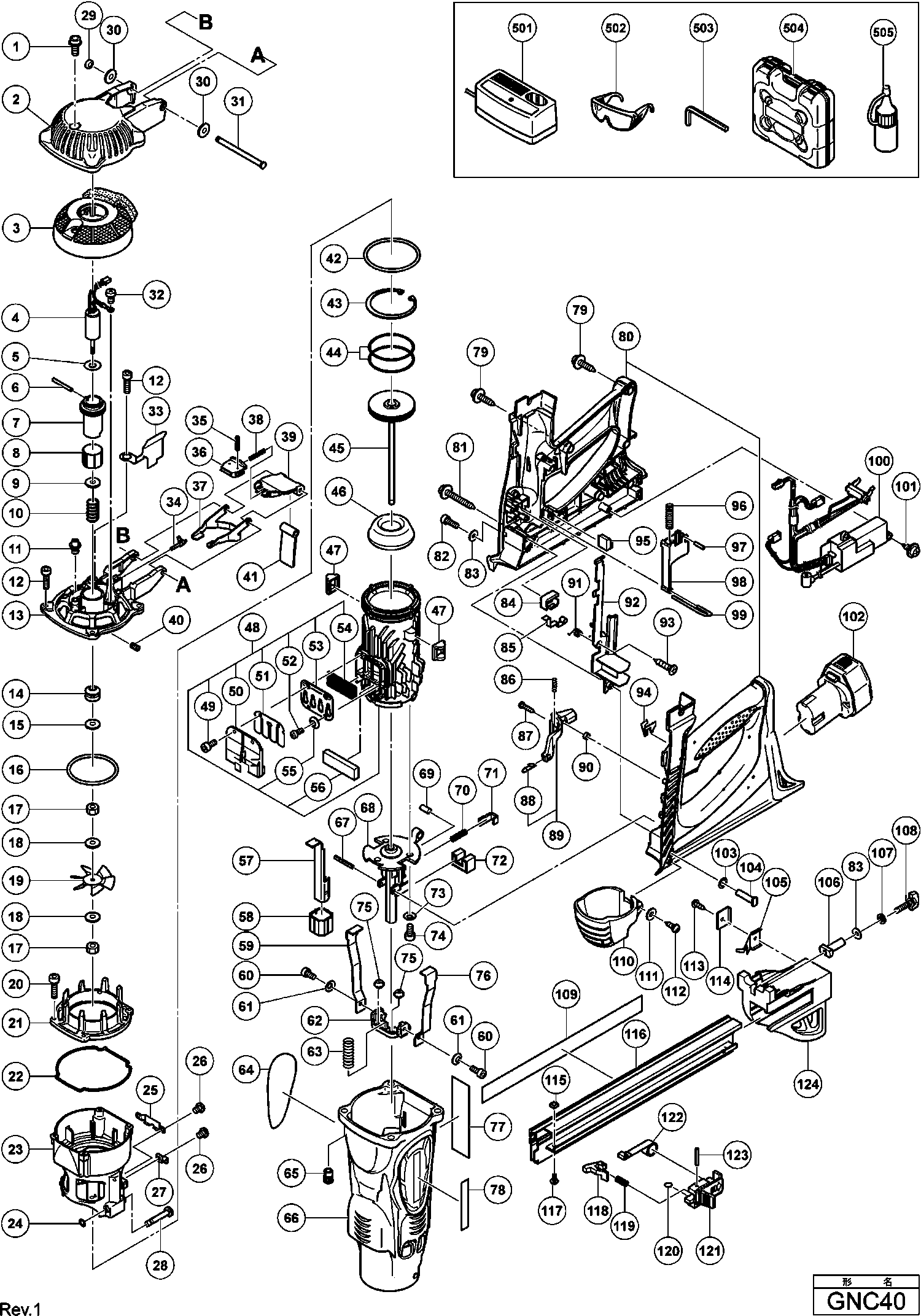 Elenco parti di Hikoki GNC40