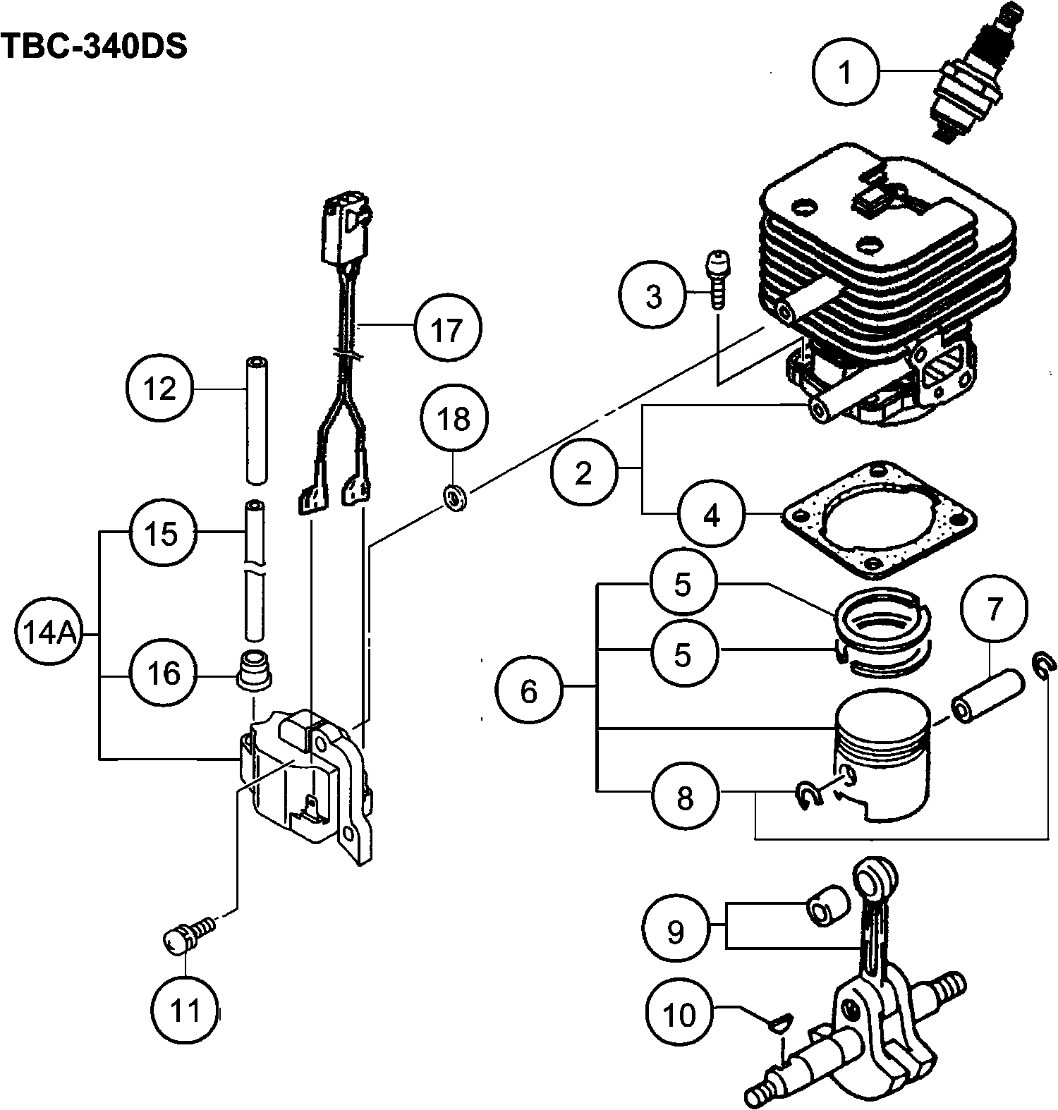Elenco parti di Hikoki TBC-340DS