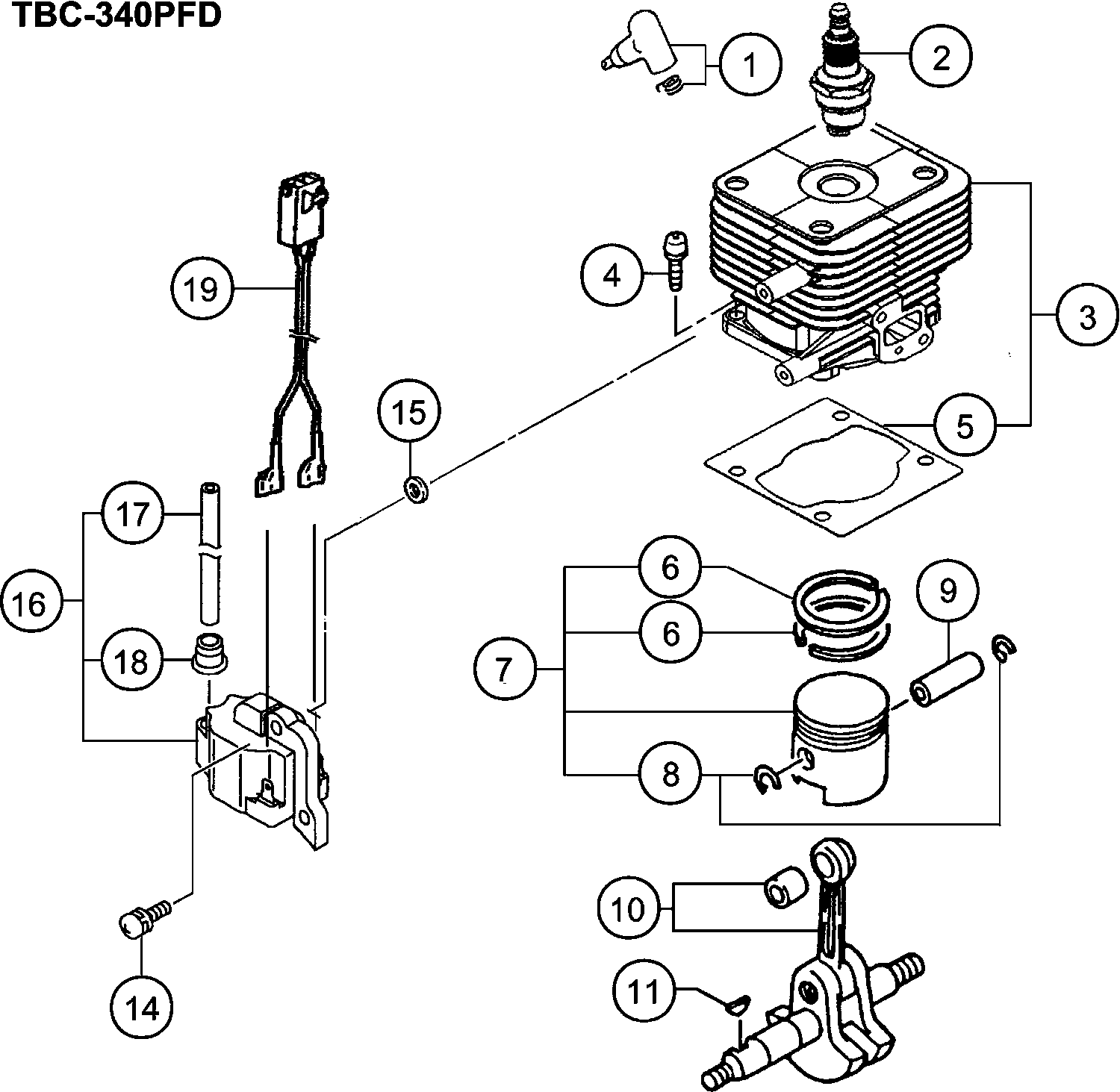 Elenco parti di Hikoki TBC-340PFD