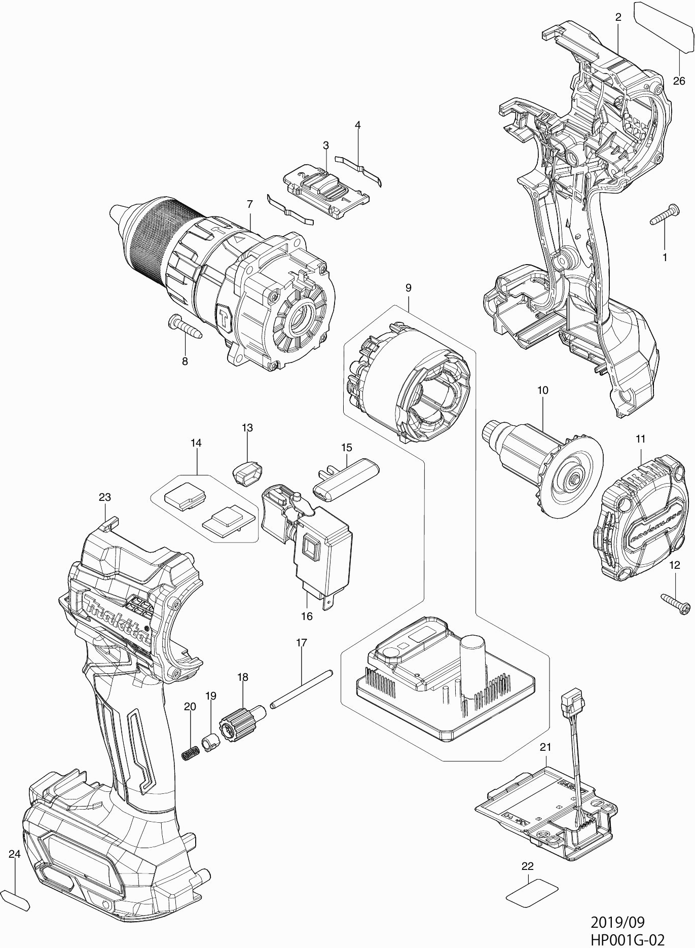 Elenco parti di Makita HP001G