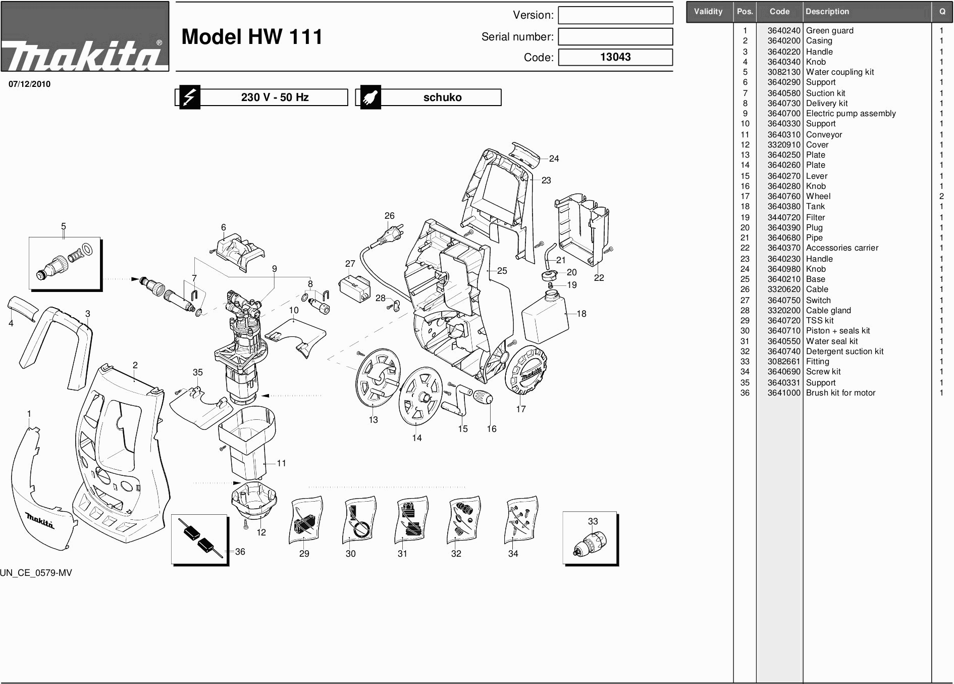 Elenco parti di Makita HW111