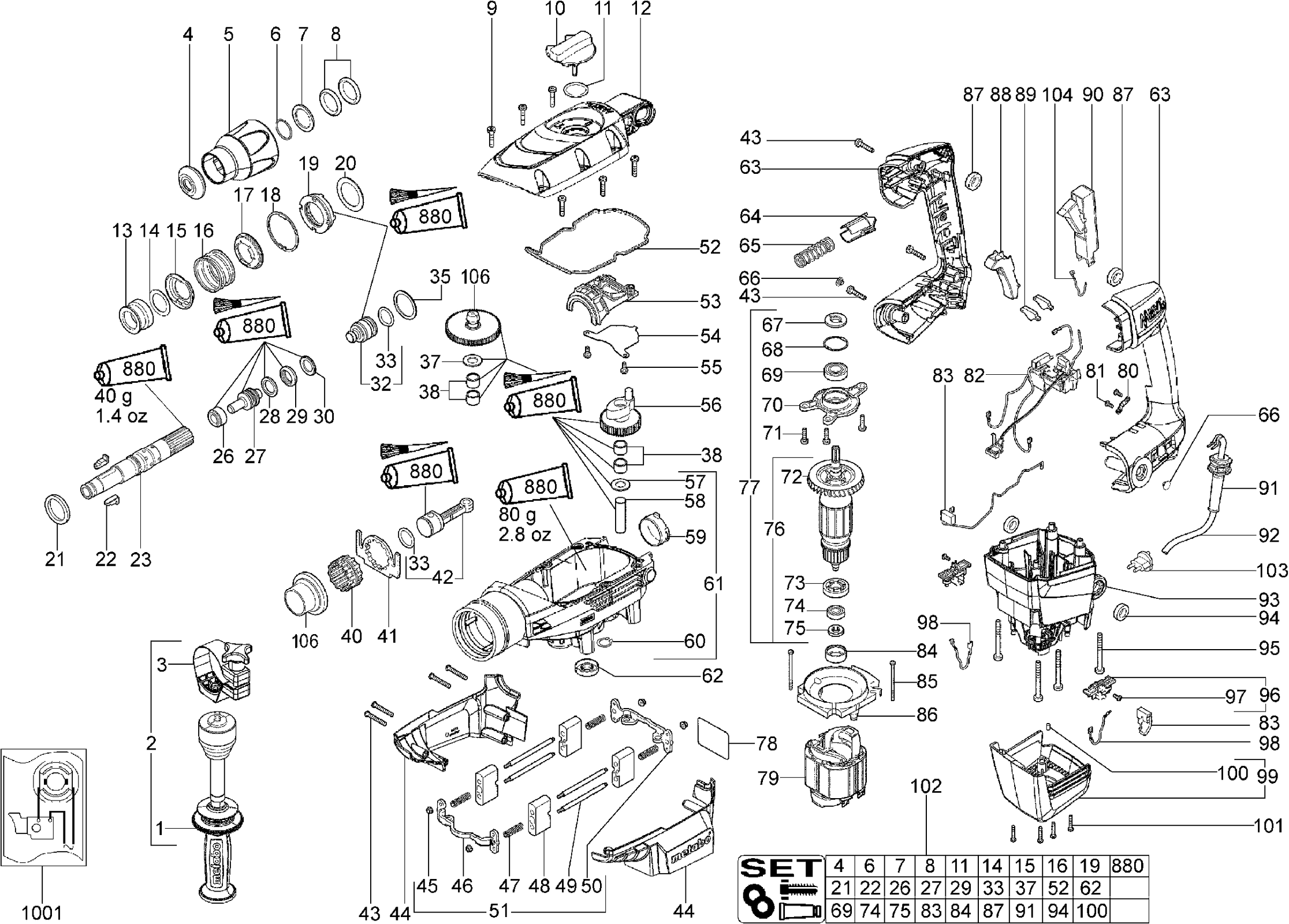 Qui troverai tutte le parti e i disegni disponibili di “Metabo 00341001 ( KHE76 )”. Da qui puoi ordinare direttamente tutte le parti desiderate. Molte parti devono essere ordinate dal produttore, a seconda della marca, ciò richiede da una a quattro settimane. Tutte le informazioni che abbiamo sono sul nostro sito web, non possiamo consigliarti su ciò di cui hai bisogno, per questo dovrai restituire la macchina per la riparazione. Nota quanto segue al momento dell’ordinazione: