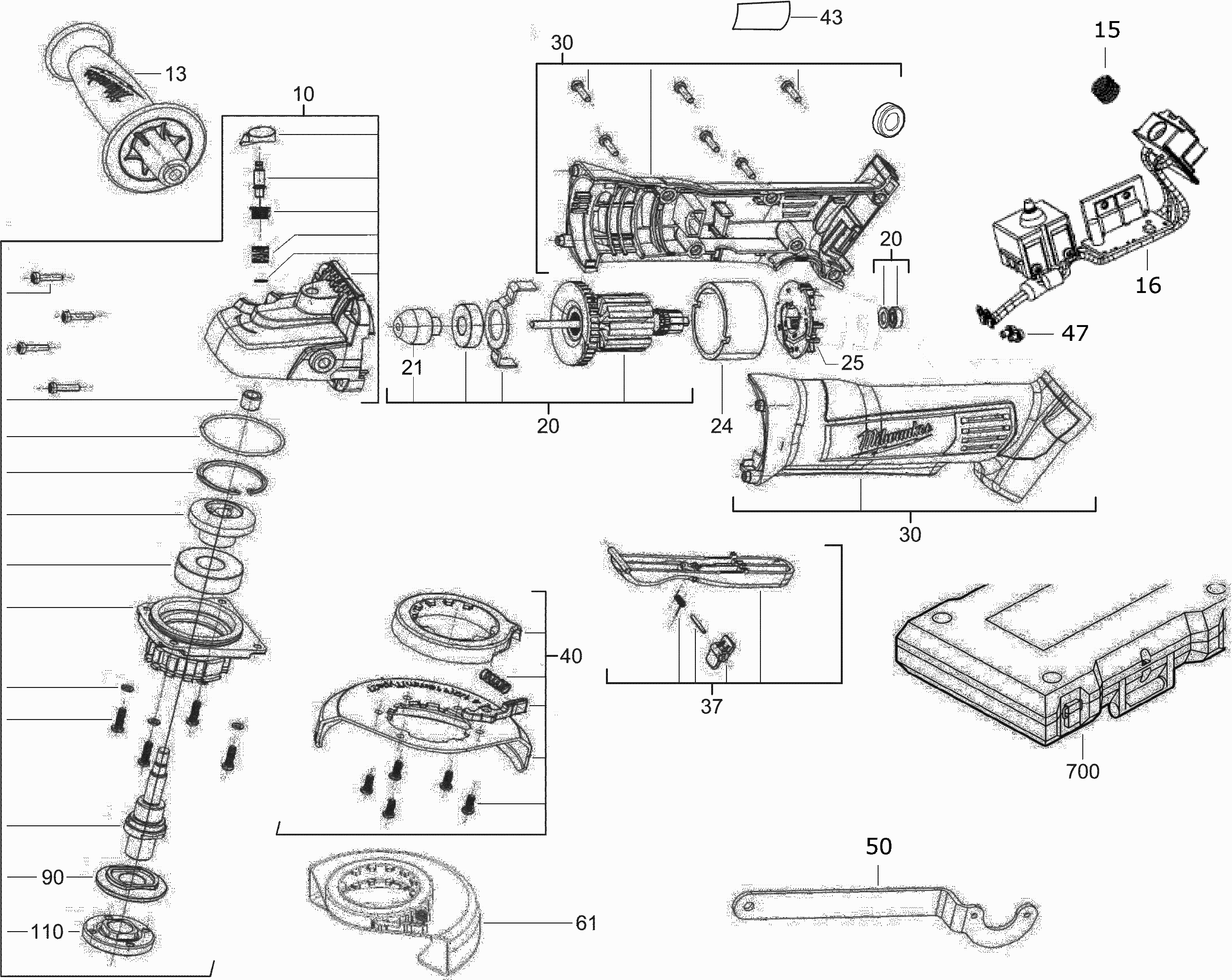 Elenco parti di Milwaukee 4000467590 ( HD18AG115-0 )
