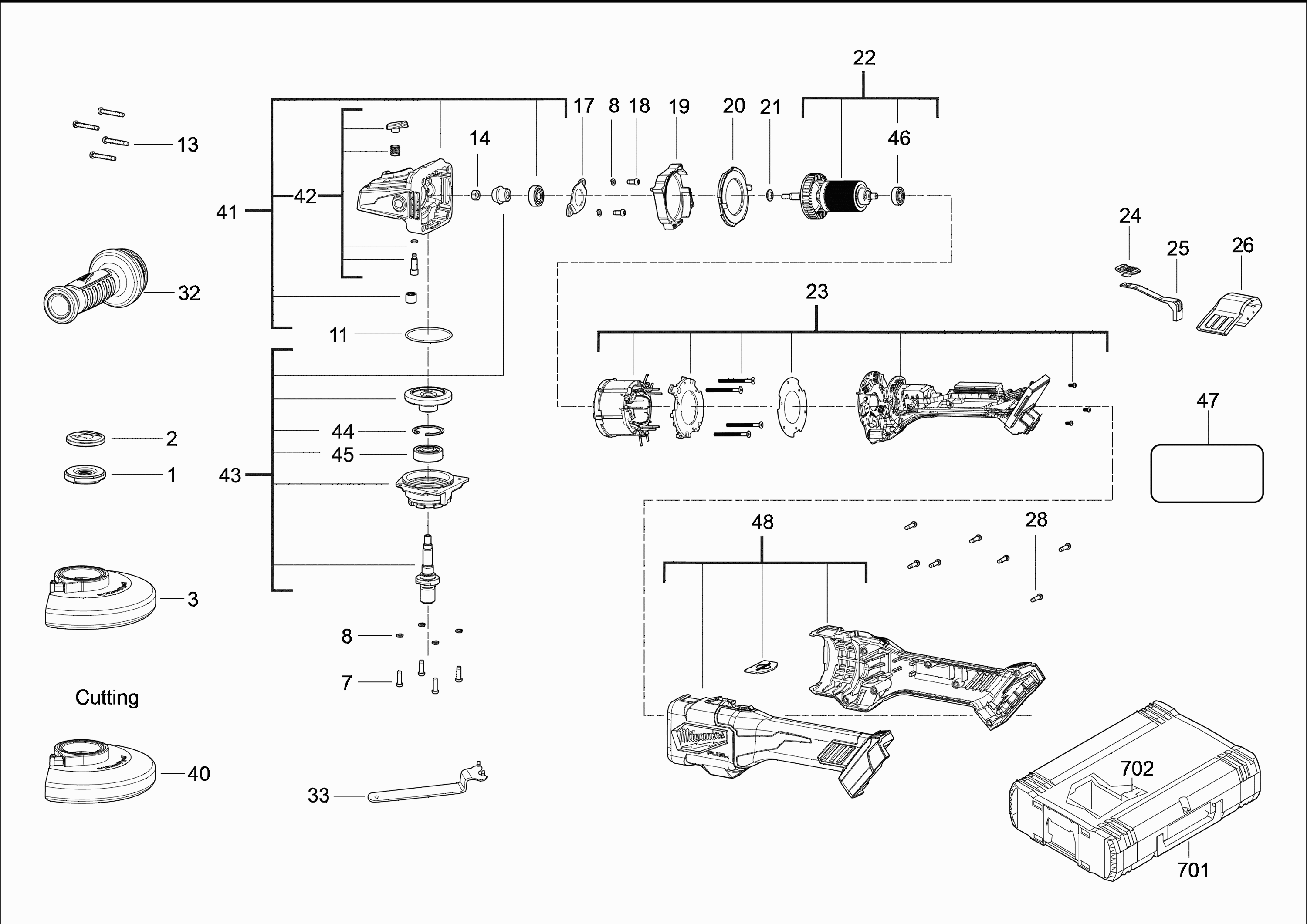 Qui troverai tutte le parti e i disegni disponibili di “Milwaukee 4000469710 ( M18FHSAG125XB-0 )”. Da qui puoi ordinare direttamente tutte le parti desiderate. Molte parti devono essere ordinate dal produttore, a seconda della marca, ciò richiede da una a quattro settimane. Tutte le informazioni che abbiamo sono sul nostro sito web, non possiamo consigliarti su ciò di cui hai bisogno, per questo dovrai restituire la macchina per la riparazione. Nota quanto segue al momento dell’ordinazione:
