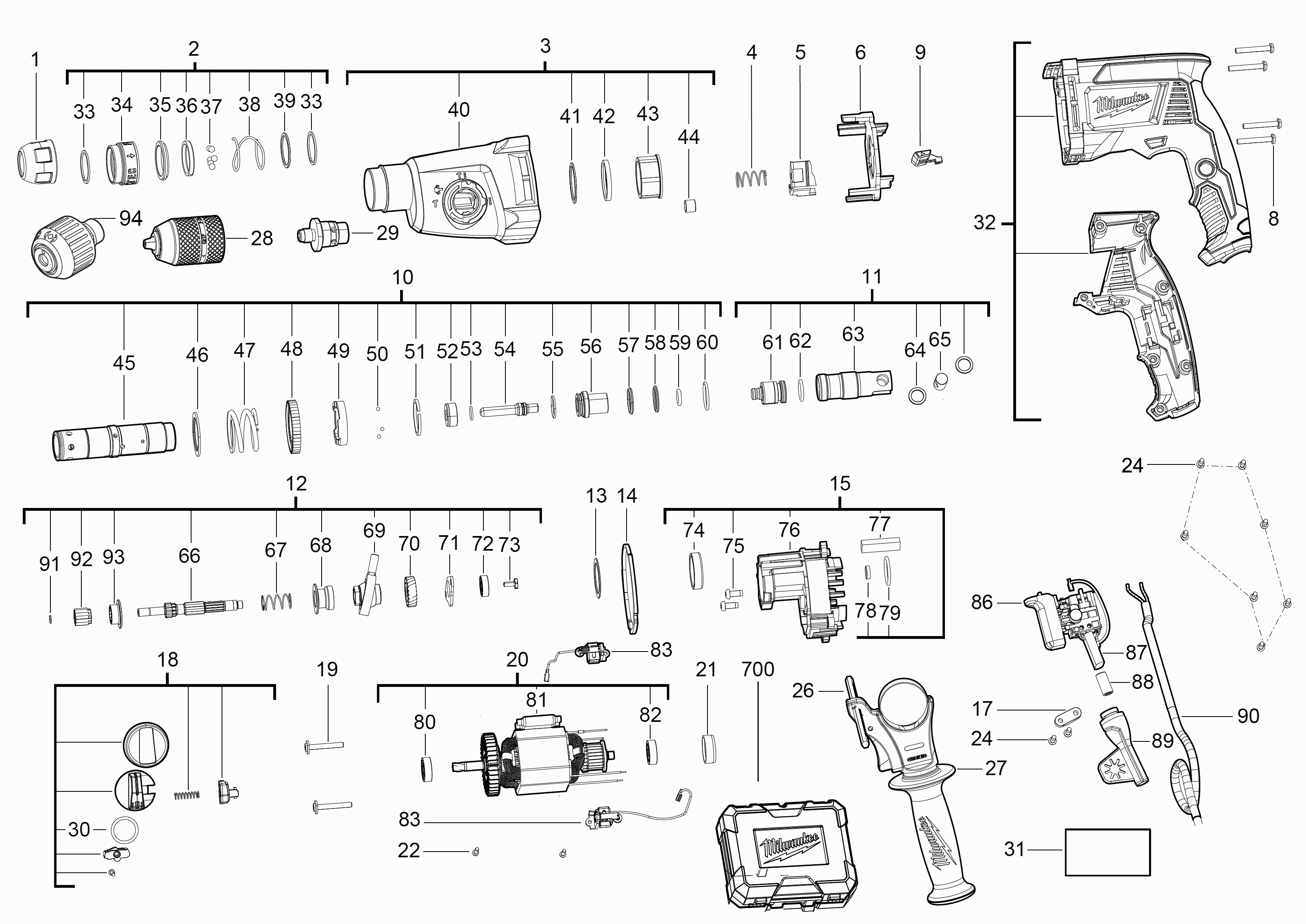 Elenco parti di Milwaukee 4000469070 ( PH26TX )